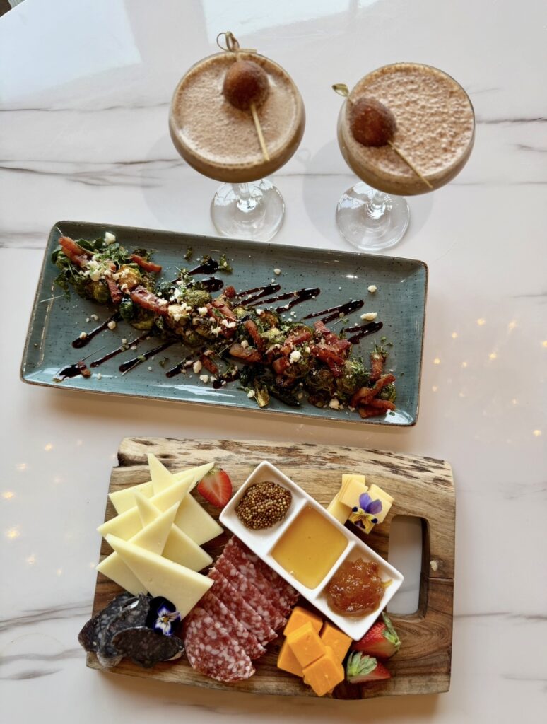 Calling all Espresso Martini’s lovers, this tasty sugar rimmed cocktail is the perfect adult bevie for you! Garnished with a bite sized sugar doughnut the balance of bitter and sweet was the perfect afternoon indulgence with a view! Overlooking the Oak Ridges Moraine it’s a relaxing way to spend time with friends! (The brussle sprouts and charcuterie were delicious too!)