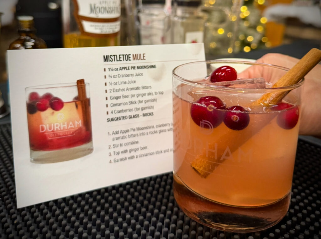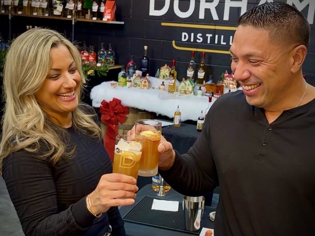 Durham Distillery is the most unique stop on the Durham Cocktail Trail, where you not only get to indulge in sipping on delicious cocktails, you also learn to make them too! That’s right, Durham Distillery offers a weekly mixology class where you learn to make and enjoy 3 delicious festive drinks! We loved the locally made charcuterie box that is part of the experience, and yes participants will earn a digital stamp for their cocktail trail map for attending too!